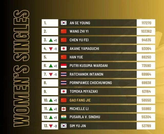 凭借这一冠军,她的世界排名再进1位,成功超越山口茜,升至第3名。